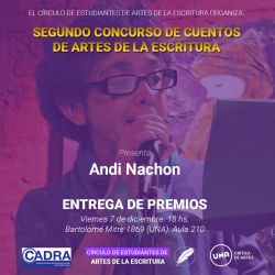 El próximo viernes 7 de diciembre de 2018, a las 18:00 hs. en el aula 210 de Bartolomé Mitre 1869 de la Ciudad de Buenos Aires, Sede de la Universidad Nacional de Las Artes, se procederá a la entrega de premios del 2º Concurso de Cuentos de Artes de la…
