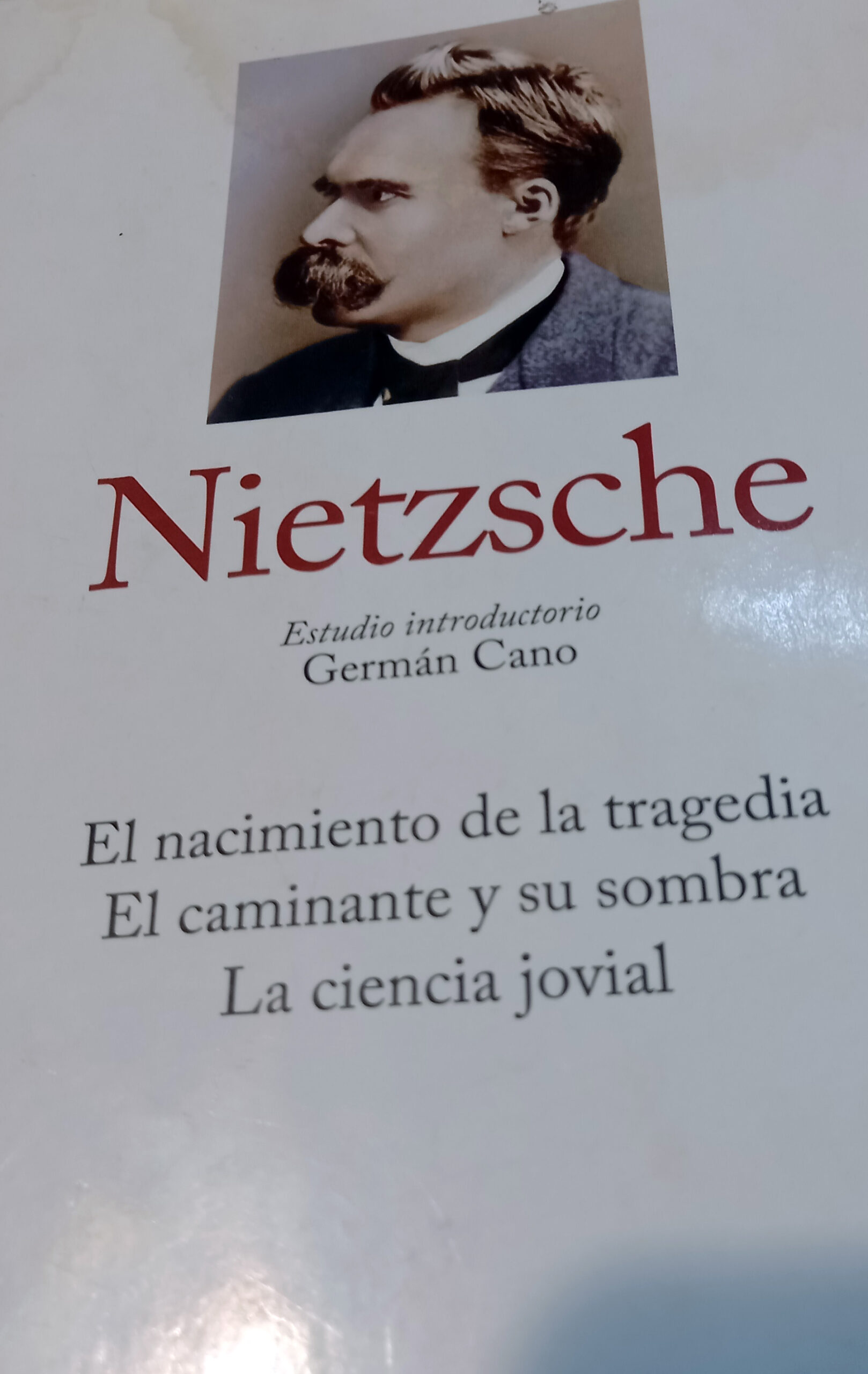 Donde encontré el dibujo, Nietzsche da su opinión sobre el libro que él mismo escribió inspirado en la obra Richard Wagner, titulado El nacimiento de la tragedia. Justo en esa página marcada, dice: